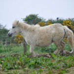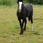 And, so, finally, we were left with Duchess (above) and Minnie. Duchess, my own beloved Clydesdale mare – now 24 years old, and who, unable to have foals of her own, has successfully taken over the upbringing of all the youngsters we have had here – the matriarch of the Bridle ways family. Duchess has now gone off to live at Polcoverack – a comfortable retirement home for horses just up the road and where I can visit her whenever I like. And, Minnie – the Shetland, the last of the horses – albeit pint-sized, to squeeze through our finally but definitely closing gates. Minnie is now living with Tara (Tara was the last person to work for Bridle ways see her story ‘The Last Post’) ruling the roost as usual, as a companion to Tara’s horse Dezy.